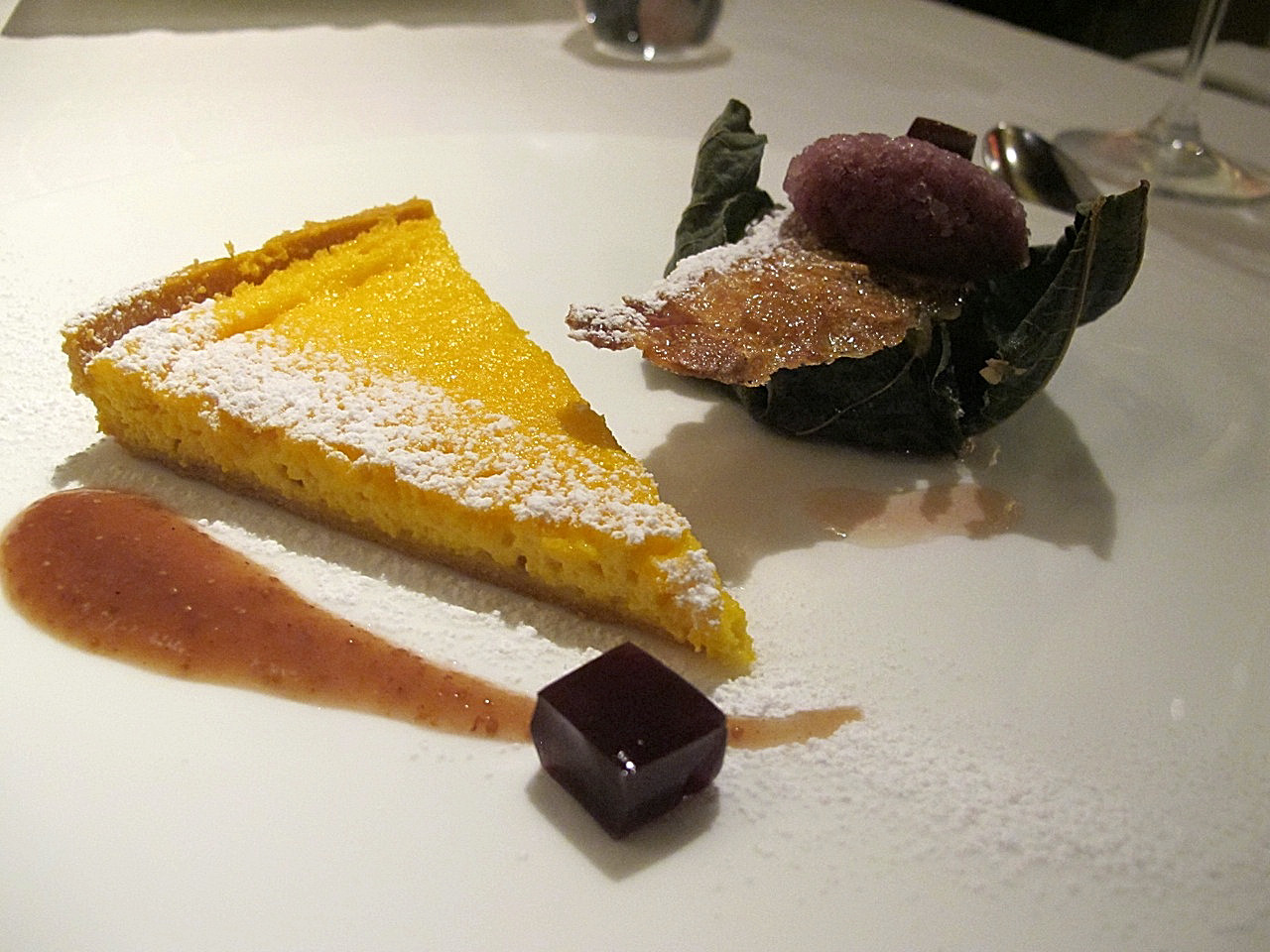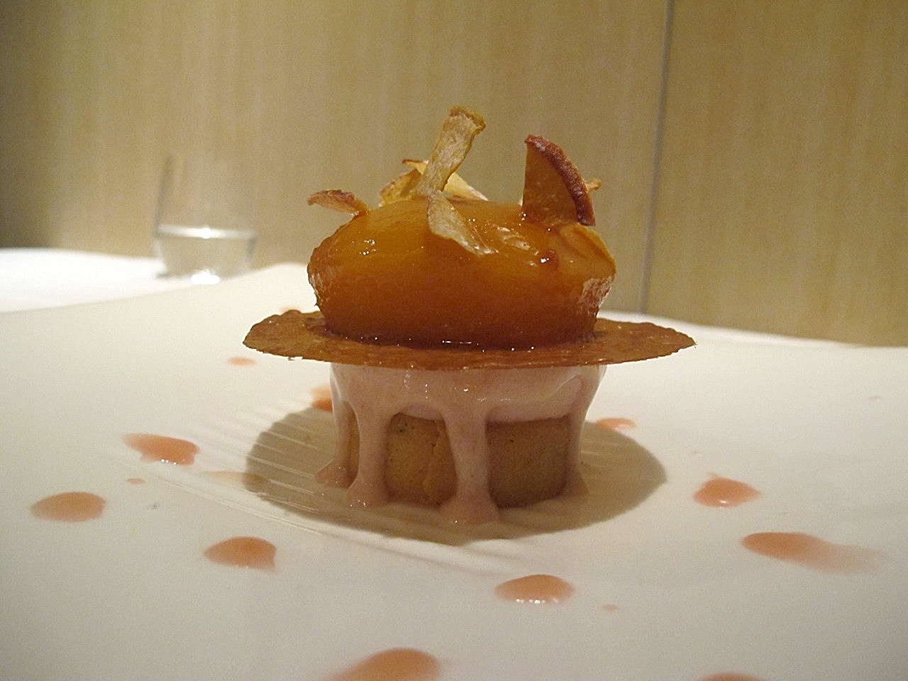 Al capitolo dolci (come al pane e ai grissini) la mano passa a quella, fatata, di Marion Lichtle e, come spesso accade da queste parti, un piatto a testa non può bastare. Spaziamo con soddisfazione infantile dalla cheese cake di Marion con fichi arrosto, alle “tecniche” pesche poché con sorbetto di pesca bianca e cuore di lemongrass