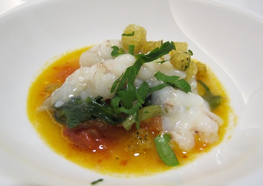 Eccellenti, poi, i ravioli di ricotta di pecora nel brodetto di crostacei: fedeli alla tradizione (la ricotta è tutt’altro che “blanda”) ma realizzati con sapienza e finezza (davvero ottima la sfoglia)