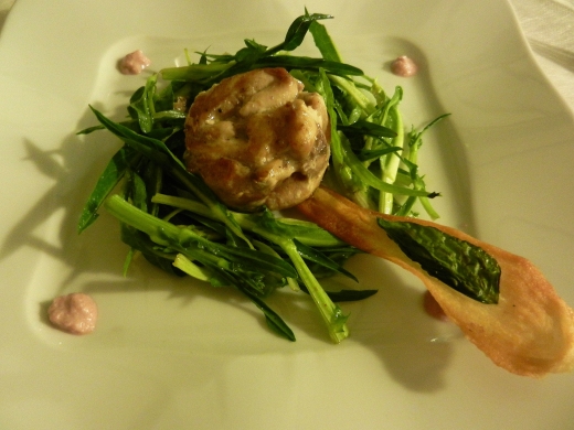 Molto buono e di cottura puntuale anche l’hamburger di sgombro, attualizzato al qui ed ora grazie alle puntarelle ed a una splendida vinaigrette