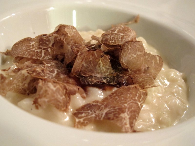 Risotto mantecato al baccalà e tartufo bianchetto.