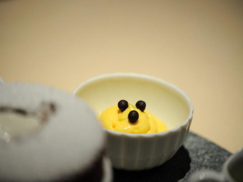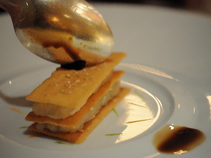 Mentre i bocconi accarezzano le nostre papille ecco che frulla in testa un interrogativo: uno chef che è anche pasticciere ha una sensibilità che gli altri colleghi non hanno? La domanda si ripeterà per tutti i piatti della serata, pungendo ancor di più al momento del pre dessert che Perbellini ha in serbo per noi: ravioli di mascarpone con dado di foie gras