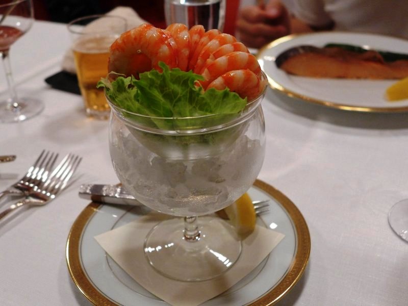 Sono presenti infatti nella sparuta carta tre o quattro pietanze (per noi salmone e gamberetti, niente dolce) che hanno la stessa funzione di un gruppo di spalla in attesa del protagonista del concerto: stemperare la frenesia dell’attesa nel modo migliore possibile.