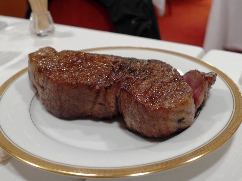 L’aspetto del nobile taglio, presentato prima della cottura, colpisce per le celebri venature di grasso che, generose, pervadono per ogni dove la massa muscolare incuneandosi tra fibra e fibra rendendo la carne un concentrato di tenera e succulenta bontà.