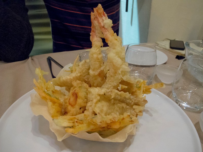 La tempura è un piatto tipico della cucina giapponese a base di fritto misto di molluschi, crostacei e verdure. Gli ingredienti vengono intrisi, prima della frittura, in una pastella di farina di riso, acqua gasata e ghiaccio. Leggi, con qualche residuo d’olio di troppo.
