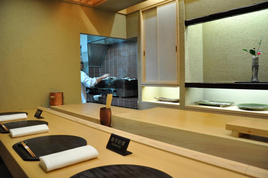 Okuda san è famoso per la sua tecnica di griglia al carbone: in numerose interviste ha sottolineato come avrebbe abbandonato l’idea di questa apertura se non gli fosse stato concesso di installare la sua griglia in cucina. Per nostra fortuna il permesso è arrivato e l’attrezzo è ben visibile dal bancone dove prenderete posto. Perché nonostante la presenza di una saletta privata, è solo al bancone che dovrete prenotare per godere a pieno dell’esperienza.