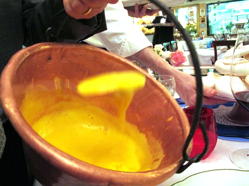 Lo zabaione montato nel paiolo di rame con il trionfo di “piccola pasticceria” è un’ode al barocco, allo sfarzo e alla mantovanità che non può lasciare indifferente nemmeno il più algido dei clienti.