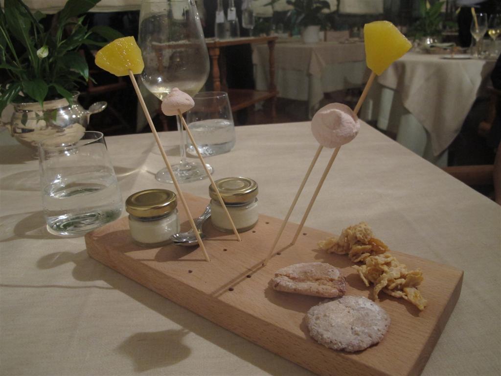 Zuppetta di mare, latte di cocco e pistacchi: il piatto migliore della serata, ottima materia prima, interessante l’utilizzo del latte di cocco, perfetto il bilanciamento di spezie ed erbe aromatiche.