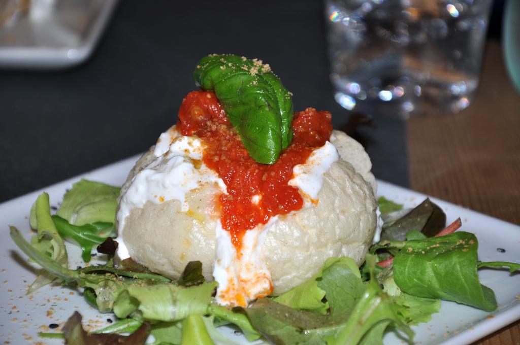 Mozzarella di pane: con pomodoro pugliese, burrata e basilico.