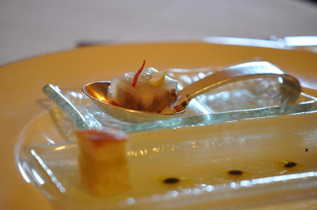 Secondo appetizer: ancora una oliva, ma dai risvolti gustativi completamente diversi. La gelatina è un inno al territorio sontuoso.