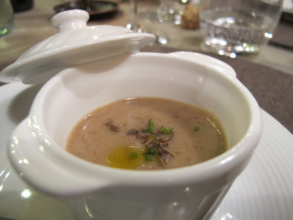 Dopo un passato tra gare e piste da sci il cuoco propone una cucina strettamente legata al territorio, con qua e là qualche tocco innovativo, sempre nel rispetto di materia e tradizioni. Mucche, galline, capre e maiali allevati in loco dal padre e i formaggi dell’adiacente caseificio gestito dalla nuora, regalano continui spunti per la creazione di azzeccati abbinamenti allo chef Bellunese. Chef che nonostante i soli 29 anni di età ed una gavetta da autodidatta sembra riuscire ad alzare l’asticella di difficoltà tecnica delle sue preparazioni, il più delle volte ottenendo splendidi risultati. L’entrée è un elegante benvenuto in cui sapori di montagna come pane nero, speck ed erba cipollina si armonizzano in un tutt’uno ed accolgono il cumino, apparentemente intruso ma invece piacevole nota speziata. Si prosegue sulle ali dell’entusiasmo con un omaggio ai formaggi. “Panino al formaggio” è un intelligente gioco di consistenze, sapori e temperature di latticini che grazie al mosto cotto trovano equilibrio e carattere. Poi i canederli di rape rosse su crema al rafano colpiscono dal punto di vista della consistenza. Grazie alle spezie conturbanti che li definiscono evocano il ricordo di una nevicata esterna guardata comodamente dal salotto riscaldato dal caminetto acceso, il rafano di gran qualità finisce per rendere ancor più elegante la preparazione.