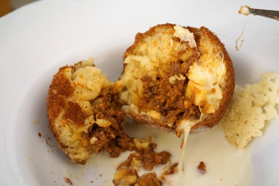 Difficile trovare una arancina (o arancino!) fritto meglio. Spettacolare. Il ragusano però spinge troppo sulla sapidità del piatto.