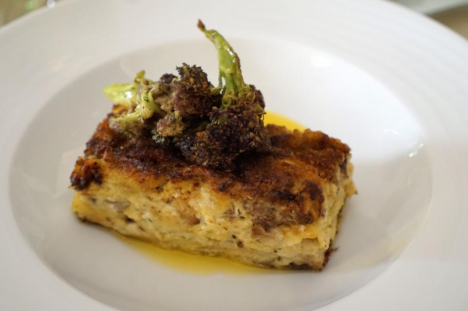 Si riprende l’idea già sviluppata al Duomo con la ricciola, questa volta il protagonista è il pesce spada, prima cicatrizzato, poi marinato e infine cotto con impanatura di ceci e pistacchi.