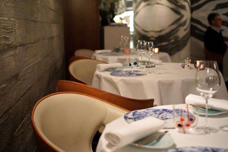Sala piena a ora di pranzo, con uomini d’affari ma anche vecchie coppie benestanti del quartiere e giovani appassionati, un bel mix che testimonia il successo già ottenuto dalla sua proposta, anche per l’attenzione a dare a tutti la giusta offerta: oltre alla carta, un menu déjeuneur a prezzo più che abbordabile, il menù stagionale e quello ancora più esteso, il “signature”, con le sue creazioni di maggior successo.