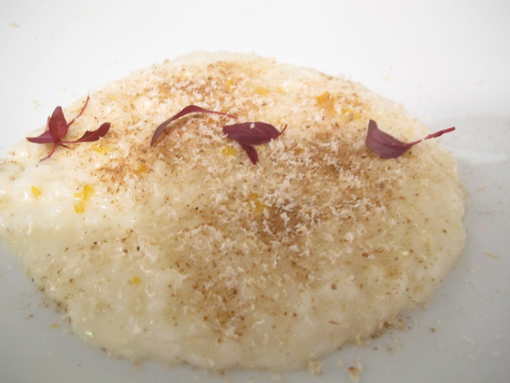 Non perfettamente equilibrato il Risotto al taleggio di bufala, polvere di porcini, agrumi canditi e castagne del Faito. Mantecatura debordante a scapito delle componenti aromatiche.