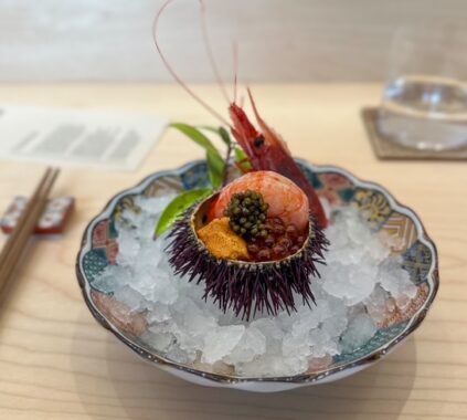 Momenti dell’omakase. Mazzancolla,tonno, riccio, anguilla e i maki misti.