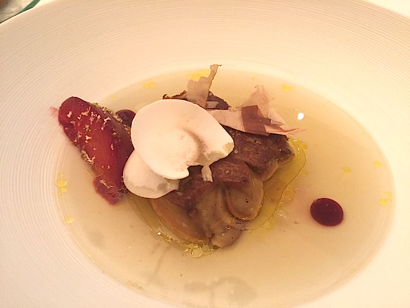 Il menu “confiance”, che lascia mano libera per una cifra davvero ragionevole, fa vivere tre ore di alta cucina contemporanea, in cui la grande tecnica classica si apre al mondo in maniera personalissima, fondendo memoria, fantasie esotiche, straordinaria materia prima principalmente territoriale.