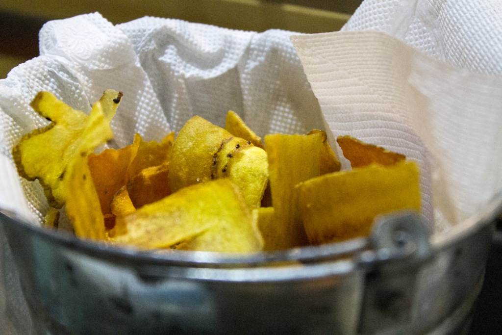 Platano fritto con salsine.