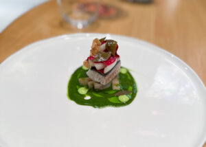 Una finezza, unita alla centralità gustativa intensa, che sono ben più evidenti nei piatti di nuovo corso, rispetto agli storici ancora un po’ troppo ricchi e confusionari, seppur resi esili ed intensi dalla rinnovata veste a cui sono stati sottoposti. Il nuovo corso è rappresentato dal piccione, con una fine salsa tandoori; dallo sgombro, in un rincorrersi virtuoso tra acido e dolce e infine dai dolci, tra i migliori e più tecnici mai assaggiati quest’anno. Solo alcuni esempi, peraltro calzanti, di una cucina che ci ha veramente divertito, a tratti emozionato.
