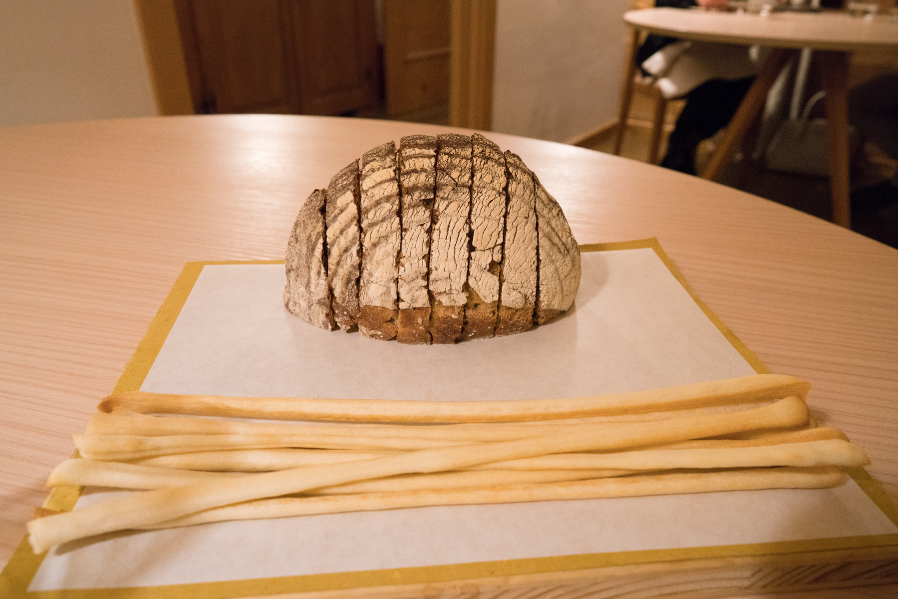 Il civet è un metodo di cottura particolarmente adatto alla selvaggina, che consiste nel cuocere la carne a fuoco lento in una salsa a base di vino, sangue, verdure e spezie. Leggi di lepre portano alla mente sapori antichi conosciuti a chiunque abbia legami con la montagna, ingentiliti e nel contempo sublimati e prolungati dai componenti vegetali aggiunti al brodo. La Linguina ai mirtilli, luppolo e salsiccia di manzo cruda, ormai un signature dish cui non si può prescindere, coniuga abilmente spunti acidi e succulenza. Esito analogo per il Capocollo di maiale nero di abbagliante qualità, perfetto goloso pendant agli spunti acidi del succo di melograno alla base del piatto. Solo nella parte dolce è venuta a nostro a parere a mancare, più forse per merito di ciò che è arrivato prima che per demeriti intrinseci, quella energica creatività che fin qui ci aveva accompagnato, ma come detto in apertura, tempo ed esperienza aiuteranno a sanare questa lacuna, a volerla chiamare così.