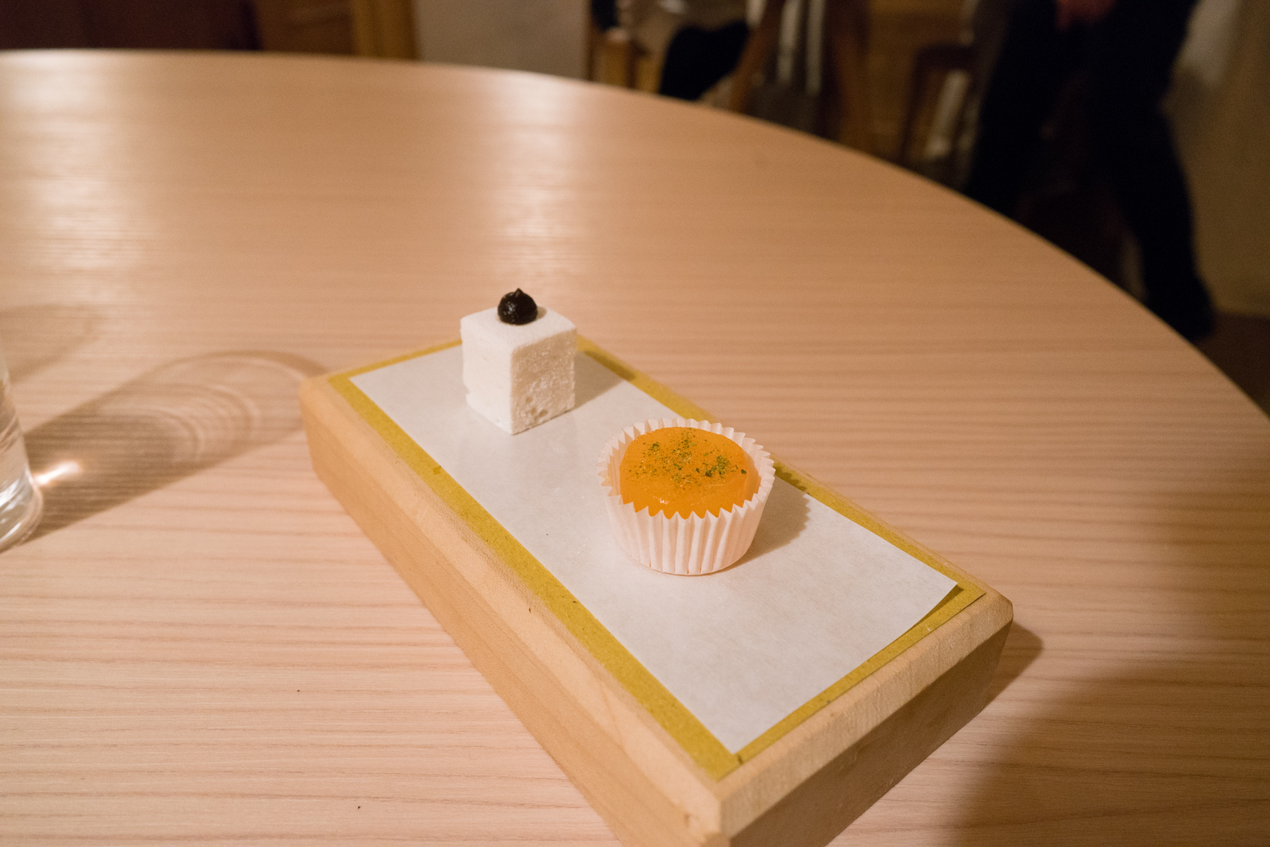 Il Calamaro di montagna rivela una perizia sullo studio di consistenze, sviluppo armonico e melodico da lasciare quasi storditi, per il suo essere così perfettamente ciò che in realtà non è: non è un calamaro, eppure paradossalmente è nel contempo il miglior calamaro assaggiato da mesi a questa parte. Il Dumpling racchiude al suo interno una concentrazione e una completezza gustativa spesso ricercata invano in un intero piatto. Il Chawanmushi