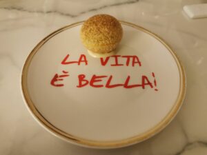 Non c è che dire solo e semplicemente una parola Bravo allo chef ,…un interpretazione Neo-classica della cucina italiana come anticipa lei Presidente nell’articolo in apertura, piatti bellissimi per presentazione e vista ….bella la pasticceria finale .! (y)