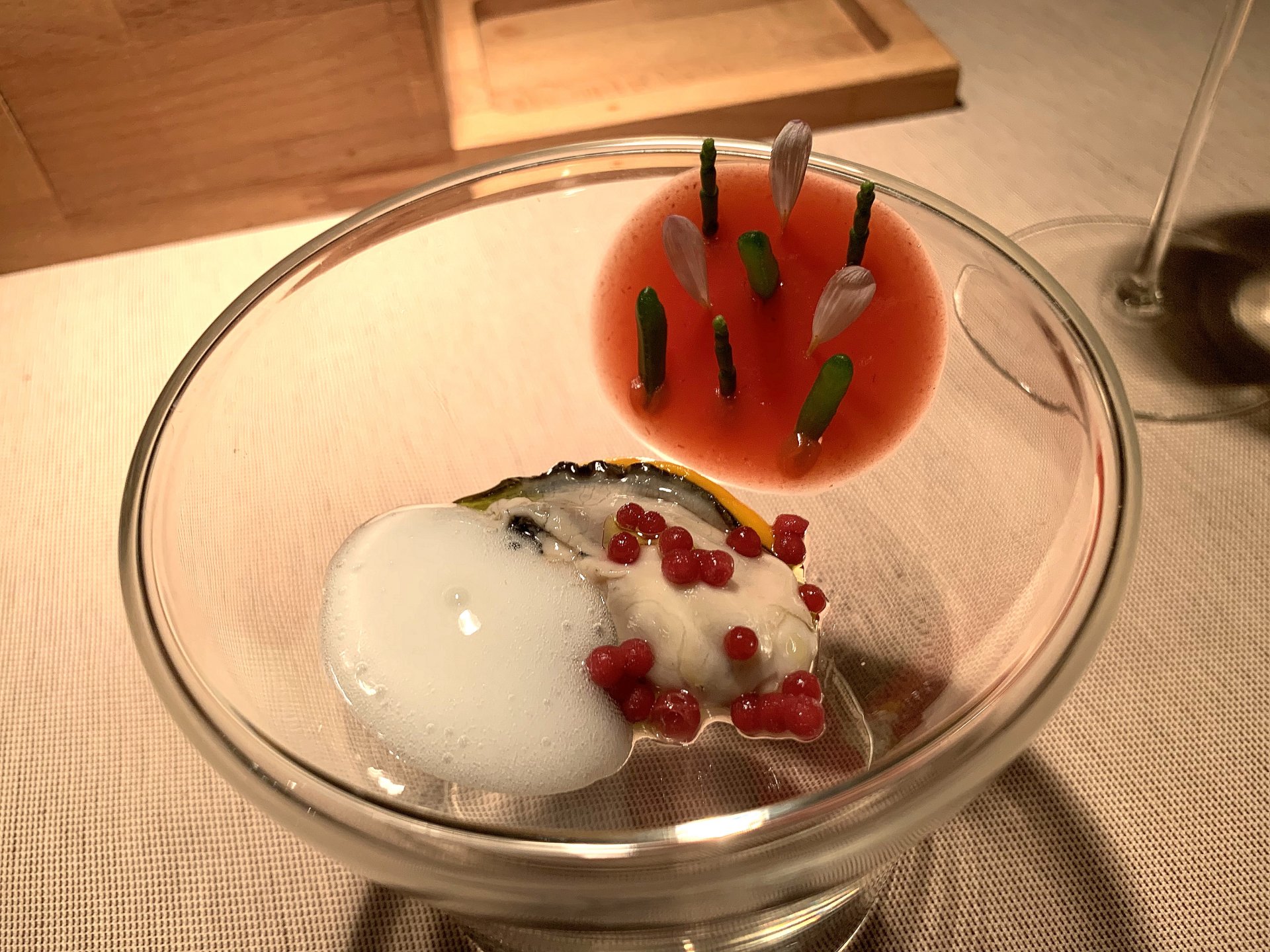 Salicornia è un genere di piante appartenente alla famiglia delle Chenopodiaceae. Una volta bruciata, le sue ceneri venivano utilizzate per produrre il carbonato di sodio alla base dell'antico processo di saponificazione. Le salicornie sono dotate di adattamenti peculiari che ne permettono l'insediamento su terreni salini o salmastri, e per questo sono dette piante alofite. Riescono a vivere su terreni ricchi... Leggi, pleonastico in molti casi, può essere assurto a firma autografa di piatti in cui la complessità di ingredienti e di tecniche alzano notevolmente il livello di difficoltà. Ma solo i grandi trovano equilibrio nella complessità, e ciò che riesce perfettamente a questa cucina che vive anche un’impronta davvero definita: autoriale.