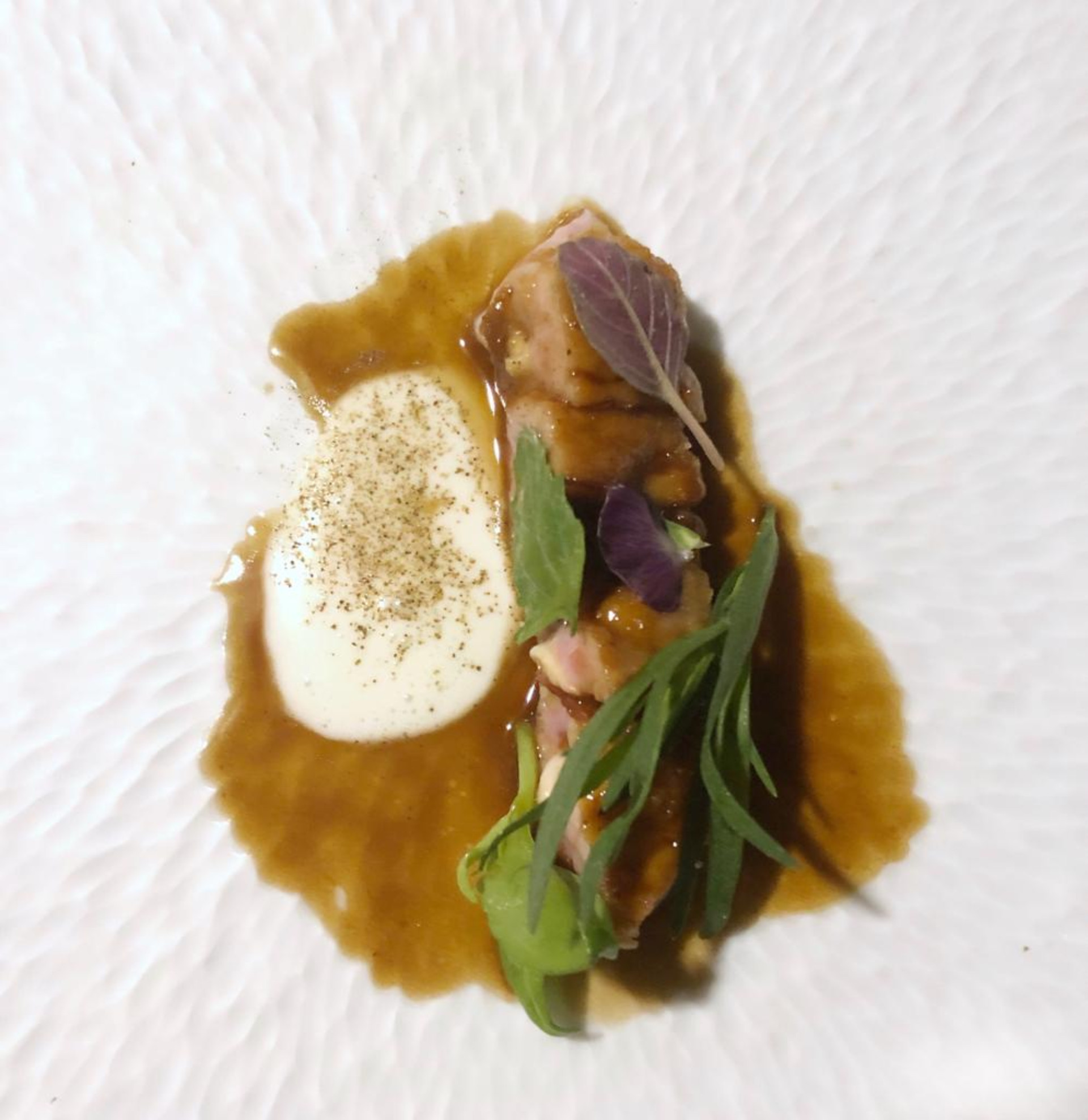 A tavola arriva il pollo, ma non uno qualsiasi. È il ficatum – già in carta del “francese” Antonio Guida – un pollo ruspante nel vercellese allevato all’aperto con fichi secchi per il settanta per cento della sua alimentazione. Da Zia è servito con salsa albufera