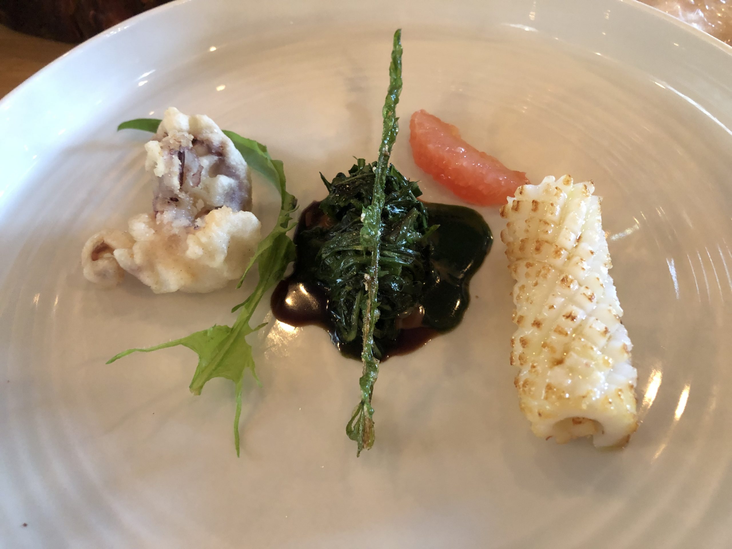 Il locale riesce nell’intento di combinare graziosamente elementi nudi in ferro, legno e cemento e appare molto funzionale tanto alla fruizione dell’ospite quanto all’allenamento di un giovane cuoco novello. E i risultati sono già degni di nota, merito della scelta di offrire una cucina ittica d’impronta assai golosa, declinata in una vasta gamma di variazioni suggerite all’ingegno dello chef dalla disponibilità del mercato. Vasta, s’è detto, quando non troppo vasta: un appunto che difatti ci sentiamo di fargli è proprio l’eccessiva generosità con cui Verrelli D’Amico si esprime già a partire dagli amuse-bouche che, dispersivi, non ci sono sembrati tutti convincenti allo stesso modo. Chiaramente, per alzare il livello di definizione è necessario ridurre gli elementi in gioco, e le rispettive combinazioni.