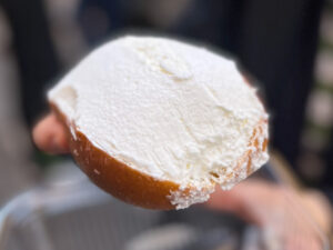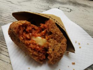 - Focaccia al finocchietto, chips di cipollotto, cannolo ripieno di tenerumi, bignè con crena di pollo arrosto.
