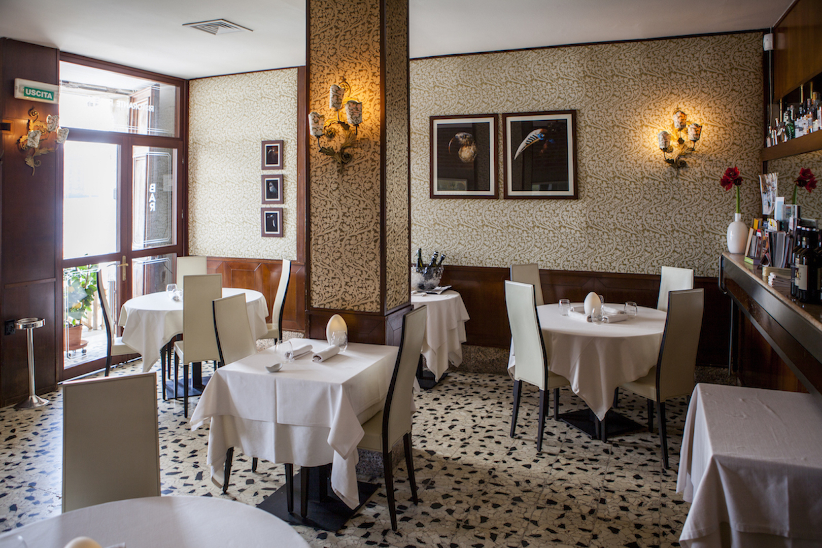Il tramonto, qui, è a vista sull’isola della Giudecca, di fronte al Canal Grande, su Fondamenta delle Zattere. Al suo interno, l’edificio vanta un sapore antico, moresco in alcune nicchie ma con l’eclettismo del suo patron che ha imparato a far convivere piccoli elementi della contemporaneità con la tappezzeria damascata e la boiserie. Del tutto speculare, la cucina di Samuele Silvestri, che reifica questo mondo in piatti che sono la proiezione puntuale, spesso allitterativa, di questo universo lagunare, quindi “mare + terra”, senza preclusioni di sorta ma con la consapevolezza che “mangiare è un atto estremo“, perché interiorizza il mondo esterno.