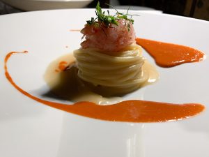Quella che non manca mai è l’idea, lo studio maniacale di ogni dettaglio e una identità. Con la leggerezza protagonista assoluta, in un menù che livella al minimo i carboidrati. Non è poco. Lavorando ancora sulla concentrazione dei sapori, la cucina di Giuseppe Biuso potrebbe fare una ulteriore evoluzione.