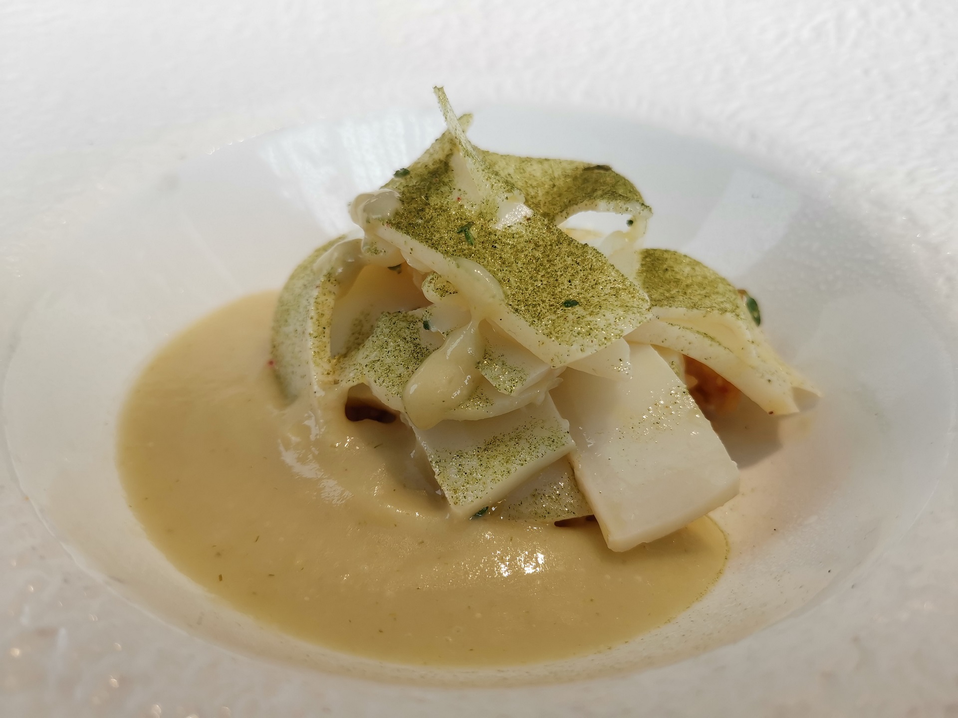 Prendiamo ad esempio seppia, cous cous, finocchio e aneto: il cafalopode era perfettamente cotto, così come gli elementi di accompagnamento, tuttavia l’insieme ha teso ad un accordo in cui nessuno dei protagonisti ha davvero spiccato, lasciando che a prevalere fosse una morbidezza complessiva che annullava ogni possibile gioco palatale.