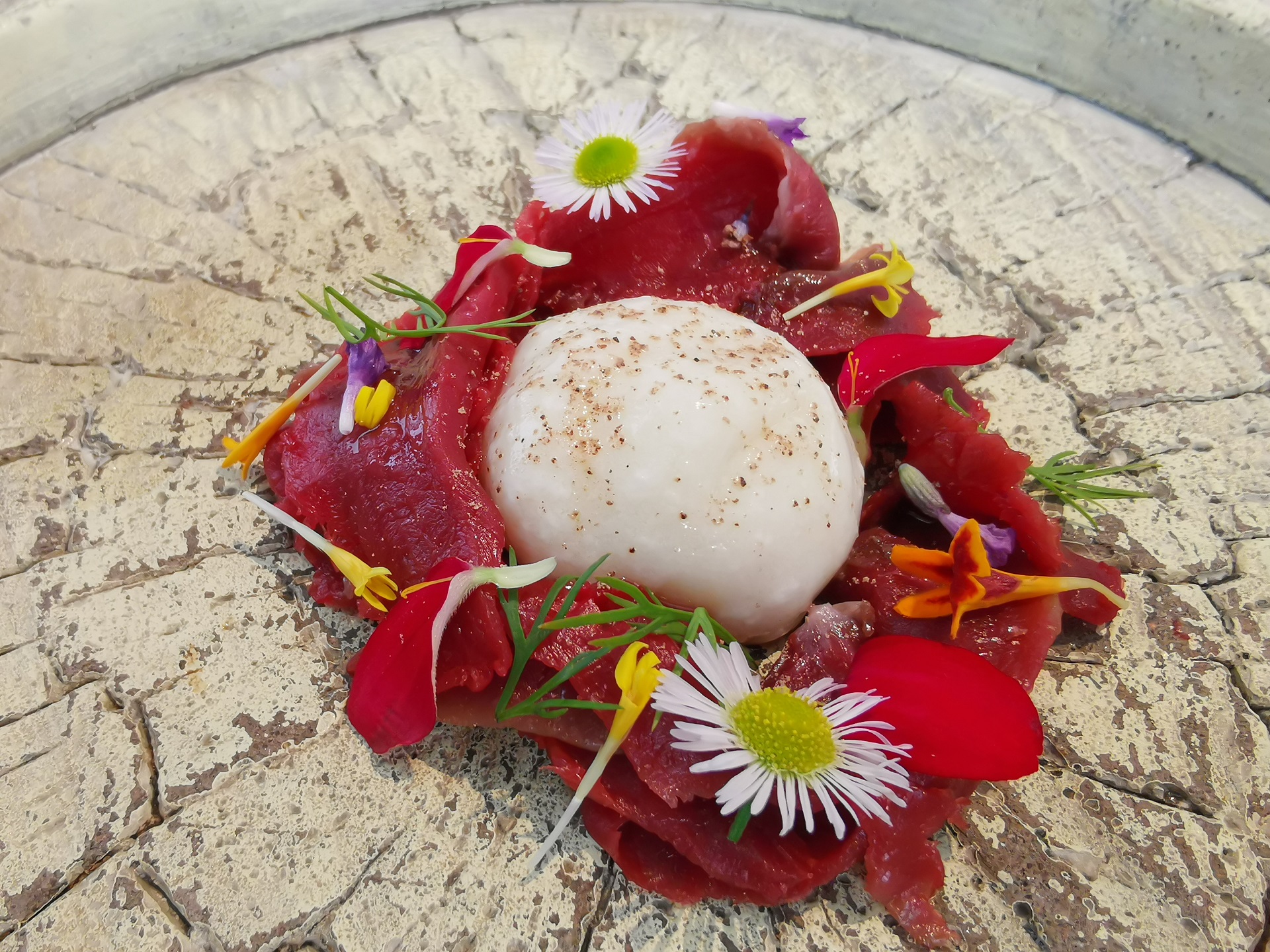 Episodi che, comunque, non intaccano la qualità complessiva dell’esperienza, impreziosita da piatti come cuore di manzo, kefir e aceto balsamico, in cui la nota ferrosa del carpaccio muscolare era perfettamente alternata all’acidità dell’aceto e alla freschezza del kefir aromatizzato alla menta, che chiudeva, puliva e rilanciava al boccone successivo.