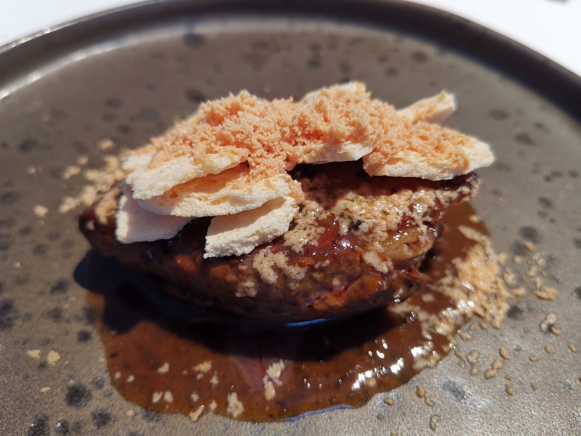 In francese significa letteralmente "fegato grasso" ed è definito dalla legge francese come "fegato di anatra o di oca fatta ingrassare tramite alimentazione forzata”. È uno dei prodotti più famosi e pregiati della cucina francese. Esistono tipologie di 'foie gras' non derivate da animali sottoposti ad alimentazione forzata. Spesso il fegato grasso è associato all'alta cucina francese e internazionale per... Leggi, tartufo, rapa: portata certamente ben eseguita, ma che ci è parsa giocare troppo sul sicuro puntando su una dolce rotondità data dal foie gras e, soprattutto, dalla meringa che ha sovrastato la nota ematica del volatile.