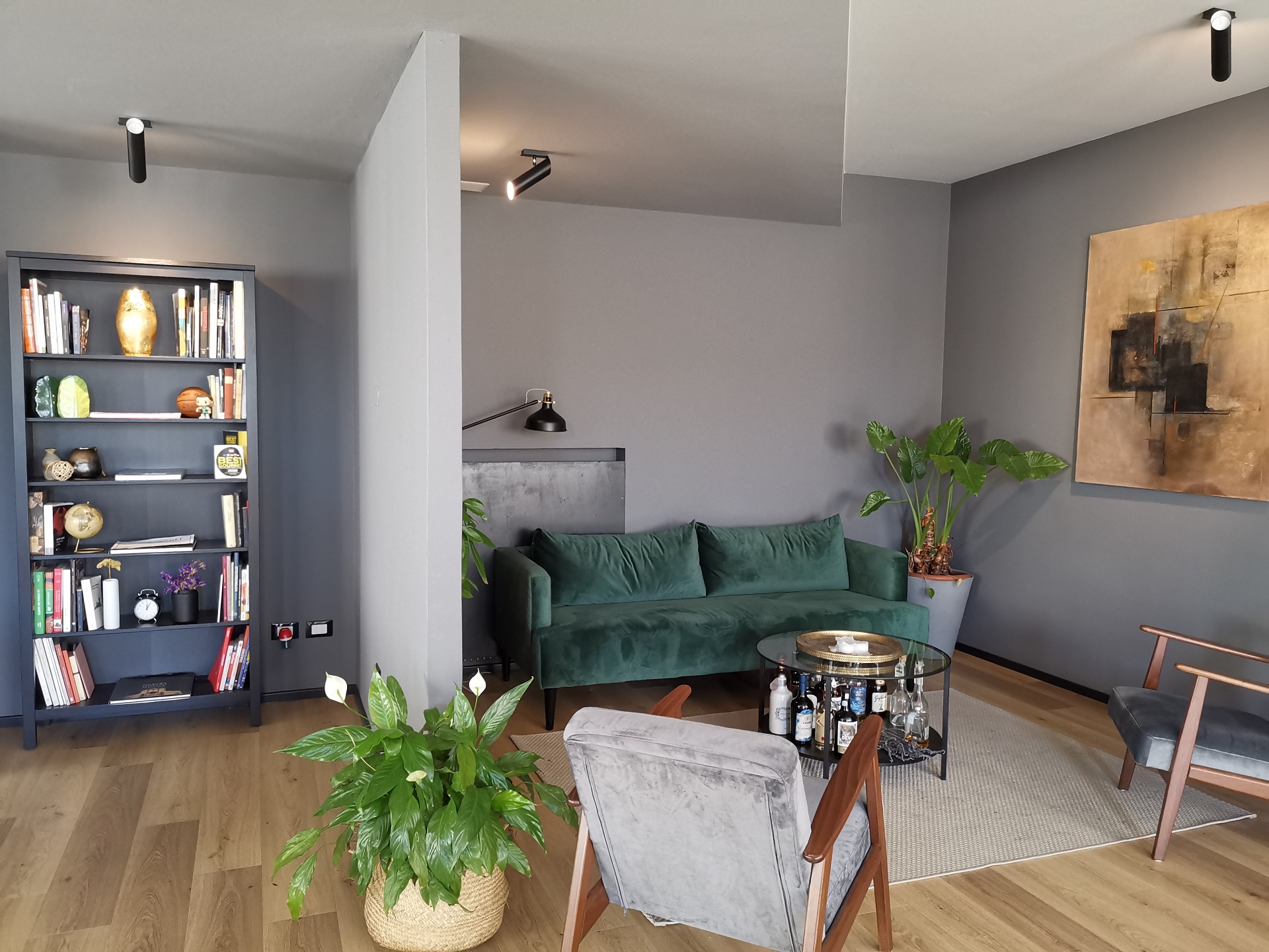 Il locale ha un taglio moderno e minimale. Suddiviso in tre sale, è connaturato da tinte neutre tendenti al grigio e al nero (nomen omen), con alle pareti quadri di artisti contemporanei che richiamano l’espressionismo astratto. Dalla cucina a vista si può agevolmente osservare l’opera dei due chef. La sala è gestita da un team di giovani volenterosi e competenti, in cui spicca la sommelier Gaia Serafini, capace di costruire una carta dei vini molto attenta alle realtà biodinamiche italiane e d’Oltralpe.