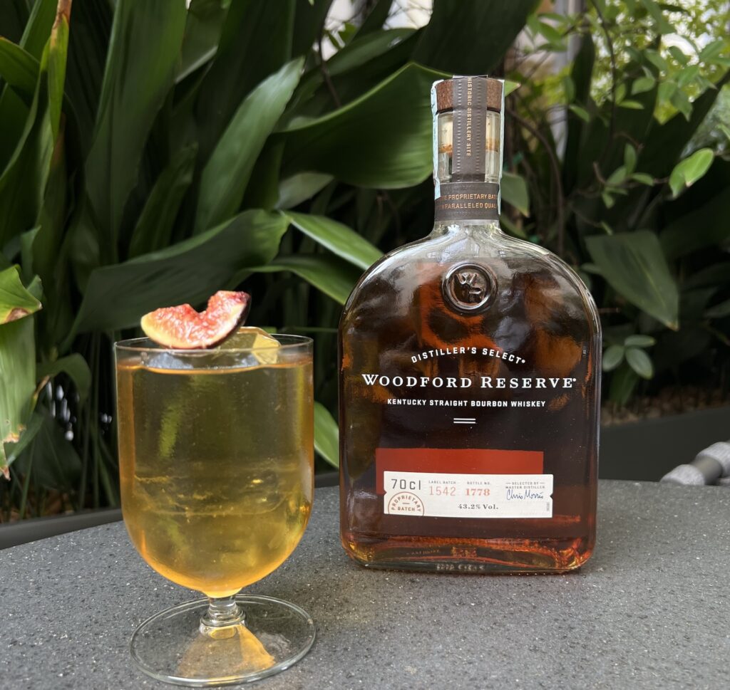 Milk Punch chiarificato a base Woodford Reserve, foglia di fico e Champagne