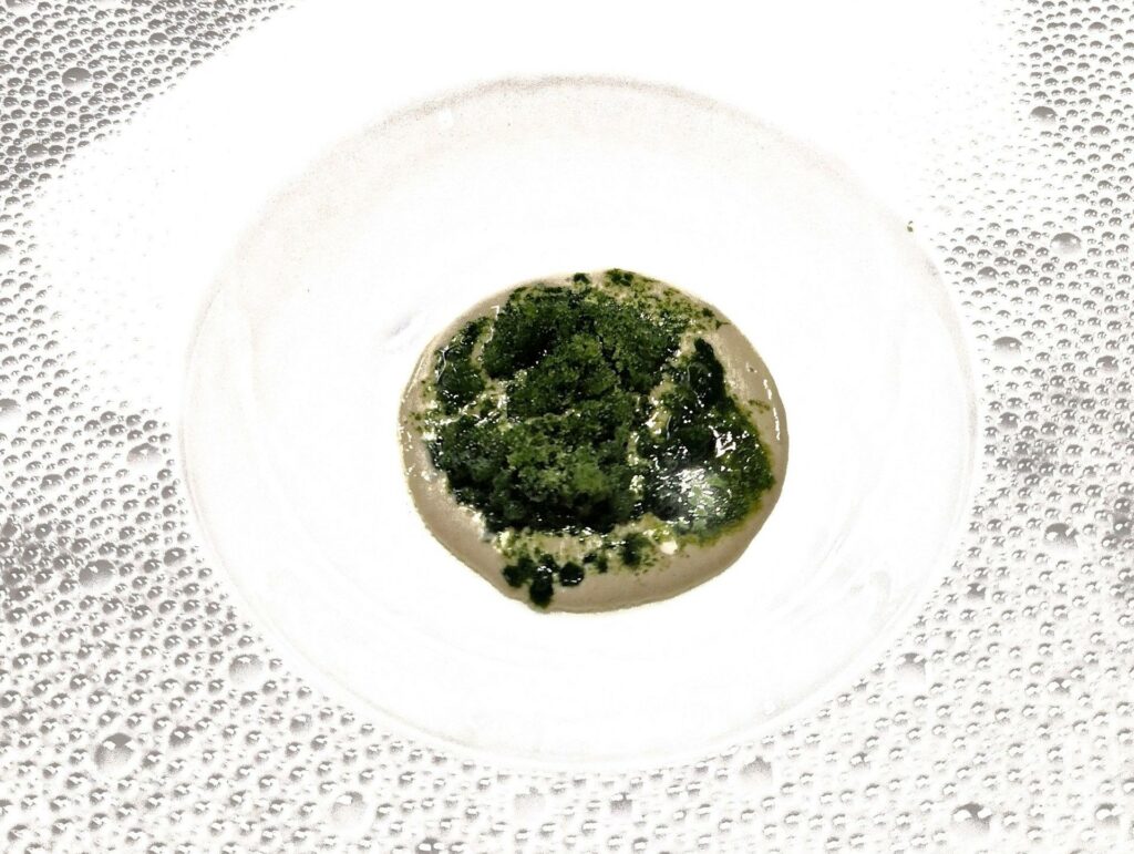 Labor Limae, giunto alla sua terza versione, si chiama il suo menù degustazione, a sottolineare il lavoro certosino, minuzioso, di cesello per approdare al risultato finale. C’è una grande attenzione al mondo vegetale, a quello delle fermentazioni, ma non per seguire mode o stilemi risaputi, ma per creare piatti che uniscono contemporaneo e territorio, come nella compiutissima Oliva tenera ascolana, clorofilla di midollo, limoni acetati e maggiorana, dove grassezza, amaro e acidità si fondono alla perfezione, così come nel Cuore, capperi, pistacchi e alloro, dove ogni ingrediente allunga il sapore della frattaglia. Ma è il lavoro sulle paste che convince maggiormente dalla golosità delle Mezze penne, peperoni ossidati, origano e ricci di mare alla trama acido piccante della Calamarata, rosmarino, pepe di Sichuan, colatura di alici