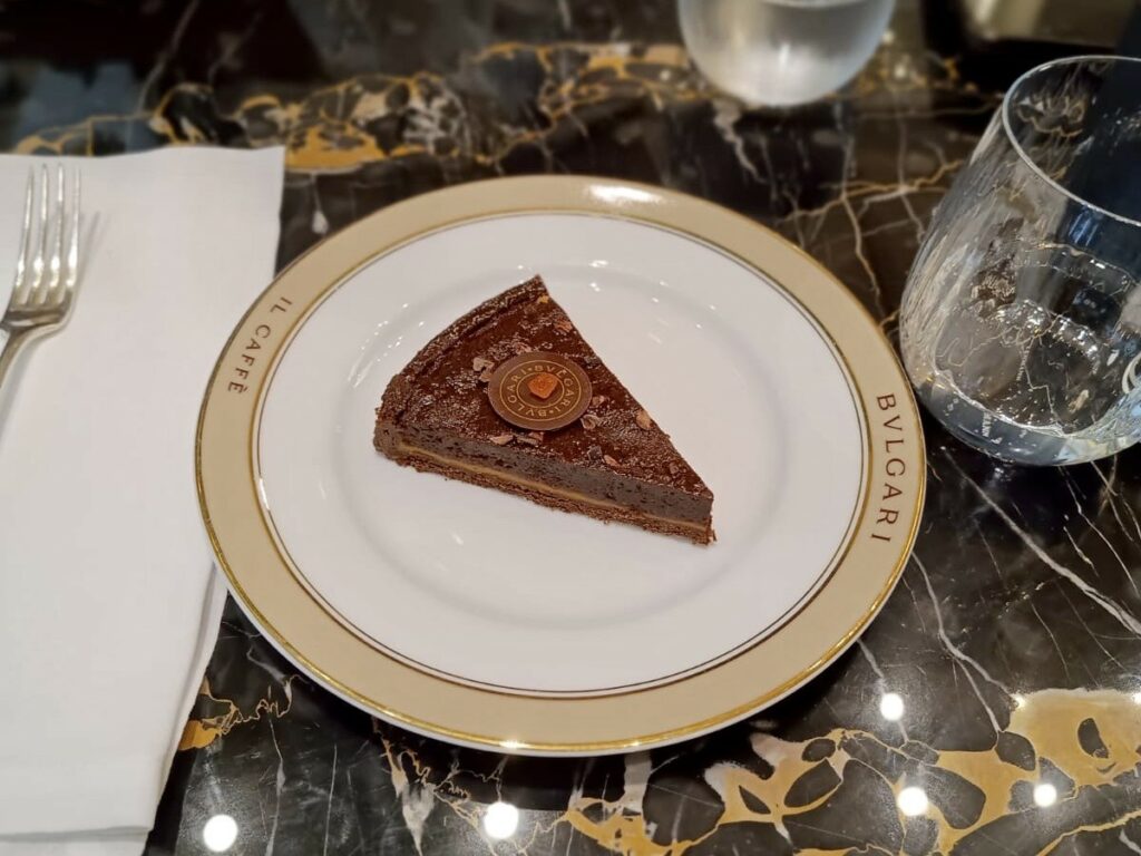 La torta di arancia e cioccolato mangiata a merenda al caffè Bulgari di Roma, creazione di Pier Simone Guarino, abilissimo executive pastry chef della struttura. Una fetta di torta all’apparenza semplice con uno strato di frolla al cioccolato croccate al punto giusto e una giusta proporzione tra marmellata di arancia e cioccolato che rende il boccone piacevole, giustamente zuccherino e non stucchevole.