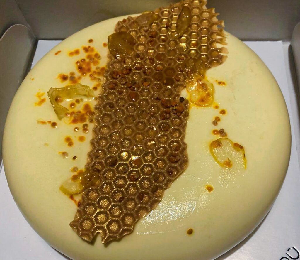 Nel percorso degustazione del Reale di Niko Romito, un gran dessert. Tra i migliori dell’anno. Una realizzazione di spessore, visivo, olfattivo e gustativo; un’aurea di delicatezza, tra sensata acidità e piacevolezza. La consistenza della crespella si sposa a meraviglia con tutti gli ingredienti e le intelligenti note aromatiche dello zafferano che tornano sul finale. Armoniosamente buono, elegantemente goloso. Un dolce che starebbe bene anche all’inizio, o nel mezzo. Ovunque.