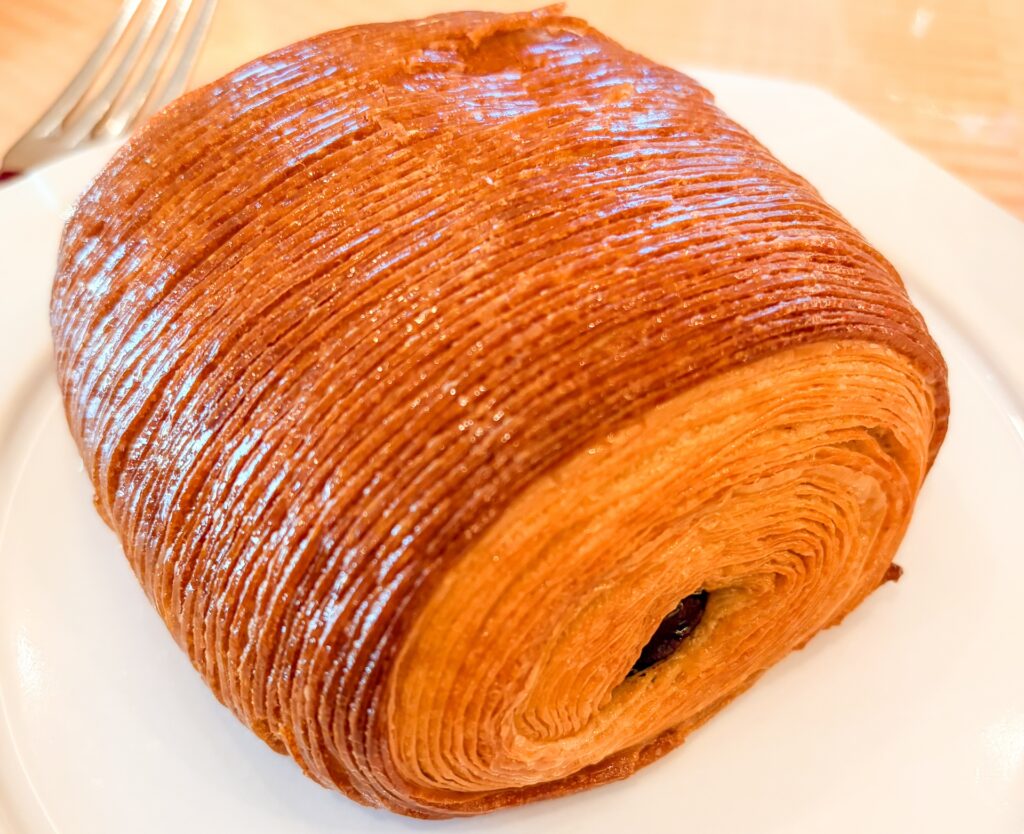 La colazione all’albergo Cheval Blanc a Parigi è certamente una delle colazioni più moderne e futuribili del mondo. Maxime Frédéric sta rivoluzionando l’alta pasticceria francese sul morso, conseguentemente sulle strutture, sulla sottrazione di zuccheri e sulla precisione di cotture e proporzioni. Un lavoro di precisione ma di grande avanguardia, che rende questo Pain au chocolat semplicemente perfetto, inedito, travolgente. Goloso ma non eccessivo, persistente e contemporaneo ma istantaneamente filologico.