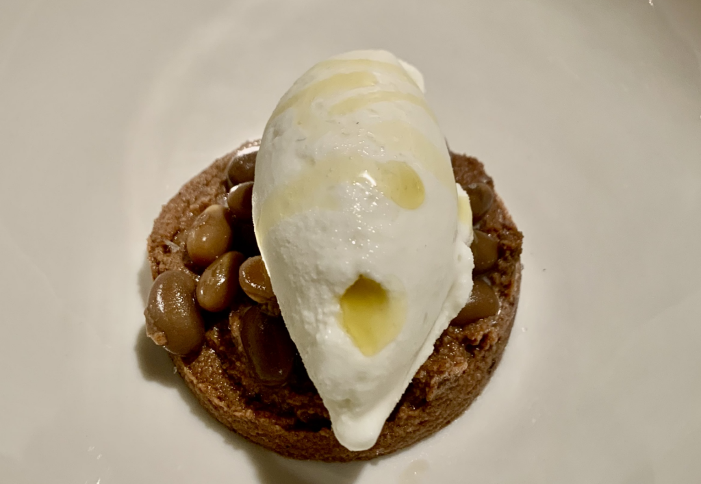 La Zuppa di fagioli di montagna, nespola, carruba e rosmarino di Antonia Klugmann a L’Argine a Vencò che, rispetto ai già memorabili ‘dolci’ di Pierangelini (ricordo un fagottini ai fagioli e fagottini ai peperoni) allarga il campo gustativo nel segno di un territorio. Zuppa asciutta, come già la Minestra asciutta, ancora di Pierangelini.