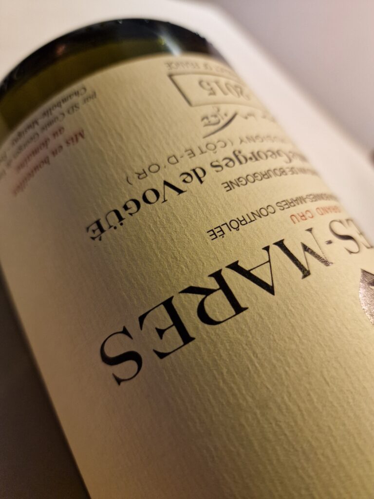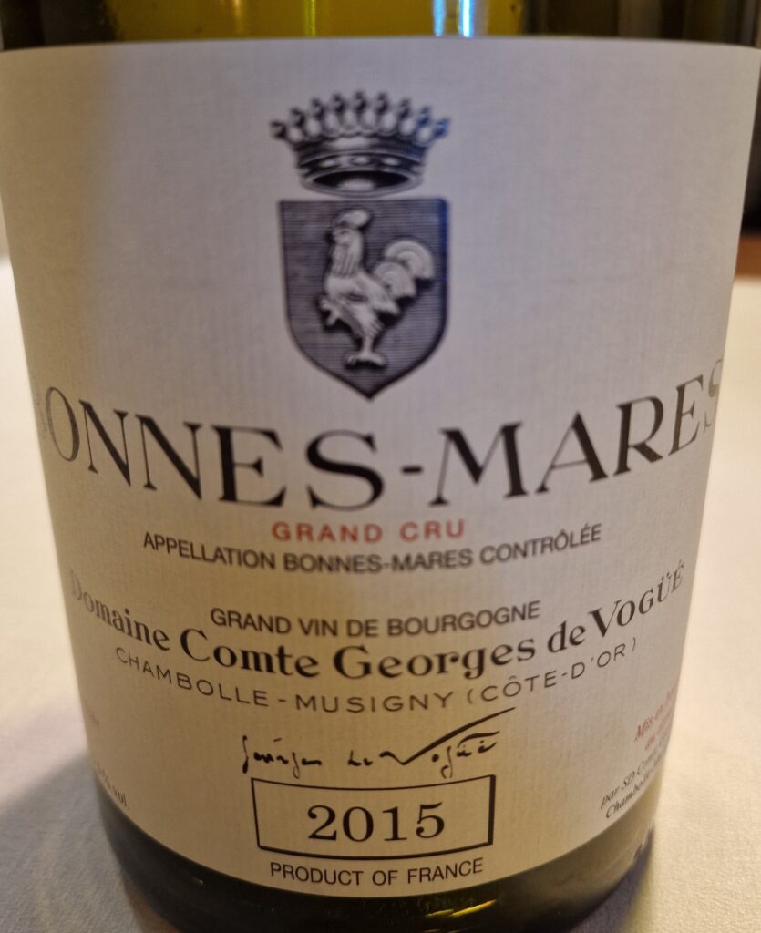 Sto riflettendo su cosa sia ancora possibile aggiungere sulla Borgogna che non sia già stato citato e scritto. La risposta è: nulla, eppure l’obbligo di provarci risiede nell’eccezionalità del momento, della serata, della bottiglia. Mi trovo al cospetto di un monumento enologico, un Grand Cru la cui rarità si veste di esclusività aristocratica: il Bonnes Mares, situato a cavallo dei comuni di Chambolle-Musigny e Morey-Saint-Denis, prodotto da Domaine Comte Georges de Vogüé, proposto in una Magnum Réserve Numérotée, una testimonianza tangibile dell’annata eccezionale 2015.