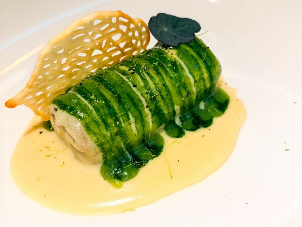 Questa tensione continua tra memoria e reinterpretazioni contemporanee si riflette anche nella struttura della proposta, articolata in due percorsi di degustazione: uno più legato alla tradizione e uno di impronta più attuale. Due traiettorie distinte ma comunicanti, dalle quali è possibile attingere liberamente, a la carte, per costruire un’esperienza personale e coerente. È all’interno di questo impianto che è possibile trovare piatti ben eseguiti e incisivi, come i Maccheroncini mantecati al burro acido, fondo bruno
