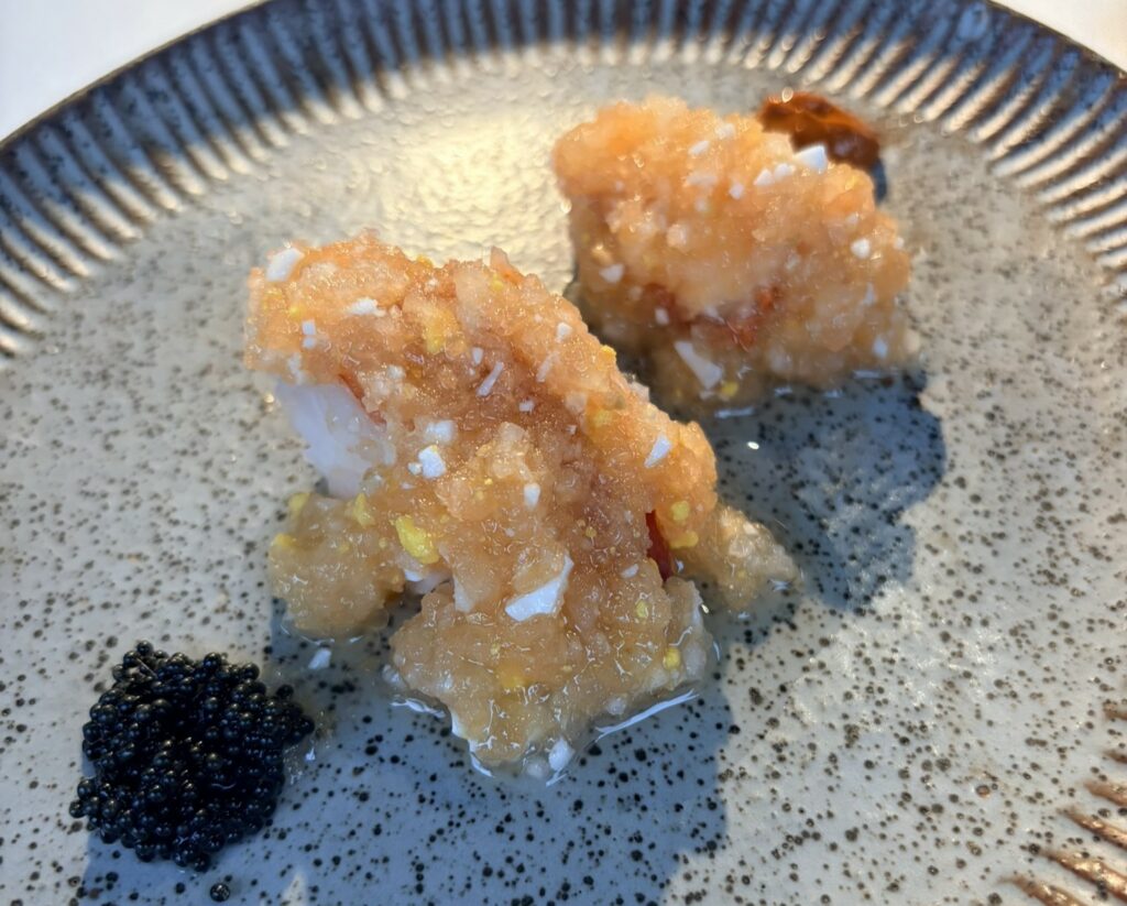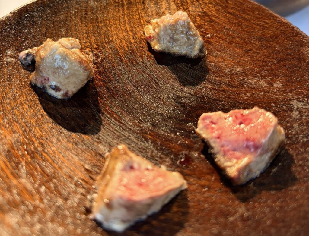 Tra i piatti più emblematici, la Kokotxa di merluzzo (le appendici situate tra mandibola e gola) proposta in tre versioni. Fritta, con una pastella leggera che ne esalta la succosità; alla griglia, in purezza, dove la precisione della cottura restituisce una consistenza quasi setosa e infine in pil-pil, la salsa emulsionata che nasce dal collagene stesso del pesce. Un piatto indimenticabile, una triade che non è esercizio di stile, ma dimostrazione di come una stessa materia possa cambiare radicalmente attraverso la tecnica.