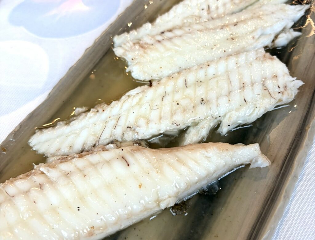 Gestito oggi da Aitor, figlio di Pedro, è diventato una vera e propria istituzione basca, nonché un ristorante di fama internazionale. Ovviamente non era la nostra prima visita e non nascondiamo che, durante il viaggio, pensieri e conversazioni tra noi ruotassero attorno al mitico Rodaballo a la parrilla, il rombo alla griglia, una delle specialità della casa, forse tra i piatti di pesce più celebrati al mondo, che tutti noi avevamo già avuto modo di assaggiare e che inevitabilmente si imponeva come riferimento. Ma il mare agitato dei giorni precedenti ci aveva riservato una sorpresa. È stato lo stesso Aitor a darci la notizia, con quella naturalezza che al ristorante Elkano è quasi una cifra stilistica: «Oggi niente rodaballo. Visto il pescato del giorno, meglio la sogliola».