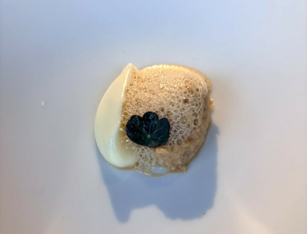 Inutile dire che la notizia abbia smorzato gli entusiasmi, ma a riportare immediatamente il tavolo nel giusto stato d’animo ci ha pensato la Joxepa, tradizionale zuppa di pesce basca, praticamente un fondo ristretto, quasi un’essenza, ricca ma al tempo stesso sorprendentemente delicata. Da lì, un crescendo.