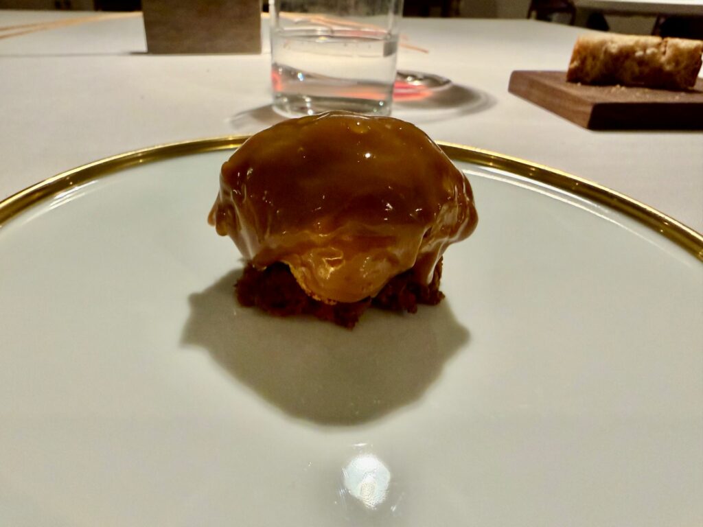 All’interno dei piatti il discorso trova quindi una trasposizione sempre lineare e coerente: nell’ultimo menù degustazione provato prima della chiusura invernale, la pasta al forno e verza è stato forse il passaggio più emblematico, con un grandioso lavoro sulle texture e una dolcezza che evolve verso un’acidità controllata e mai invasiva, ottenuta per fermentazione (senza aggiunta di aceto), dando vita ad un piatto assoluto e futuro signature. La Trota, mandorla e alloro, ormai vero e proprio classico, continua a colpire per una consistenza al morso cremosa quasi irreale. Il Raviolo di mandorla e brodo di bosco resta un punto fermo, con il brodo profondo e stratificato e il raviolo di una morbidezza assoluta, in un equilibrio ancora oggi esemplare. Il Fungo brasato
