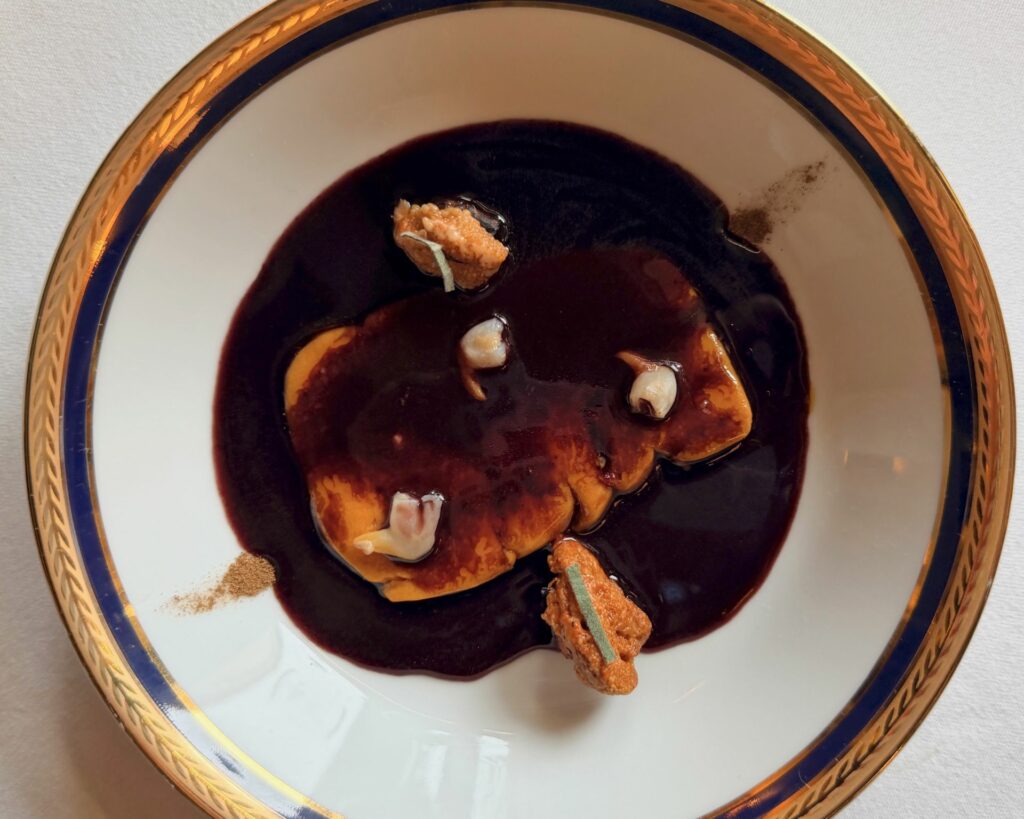 IL PIATTO MIGLIORE: Foie gras tiepido, ricci di mare, pompelmo bruciato, salsa di riso venere e vermouth.