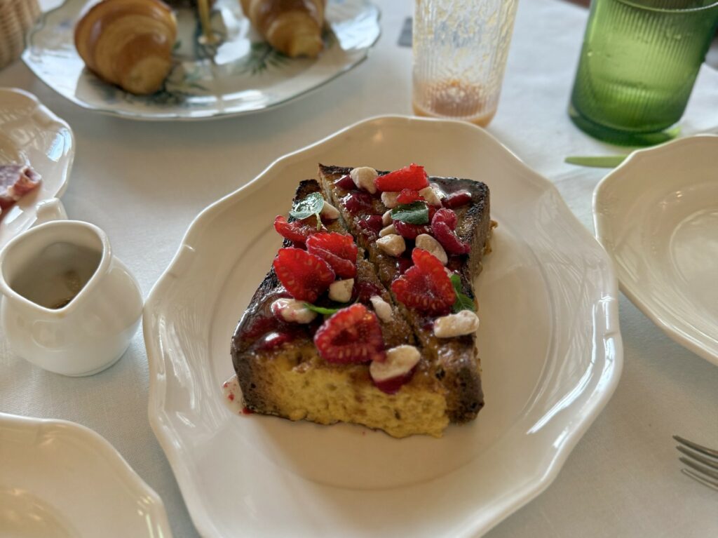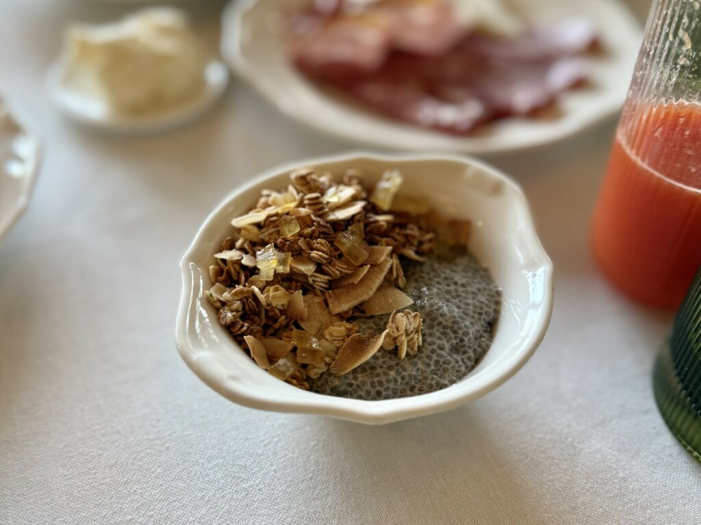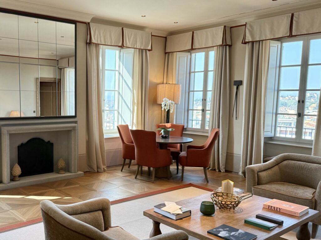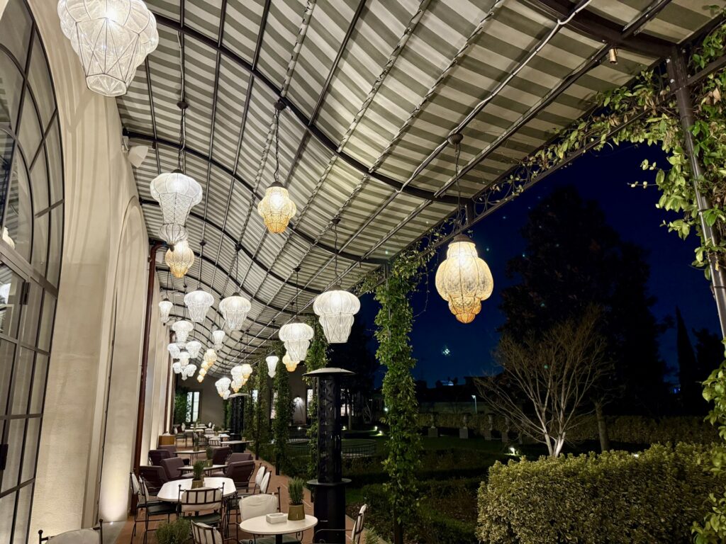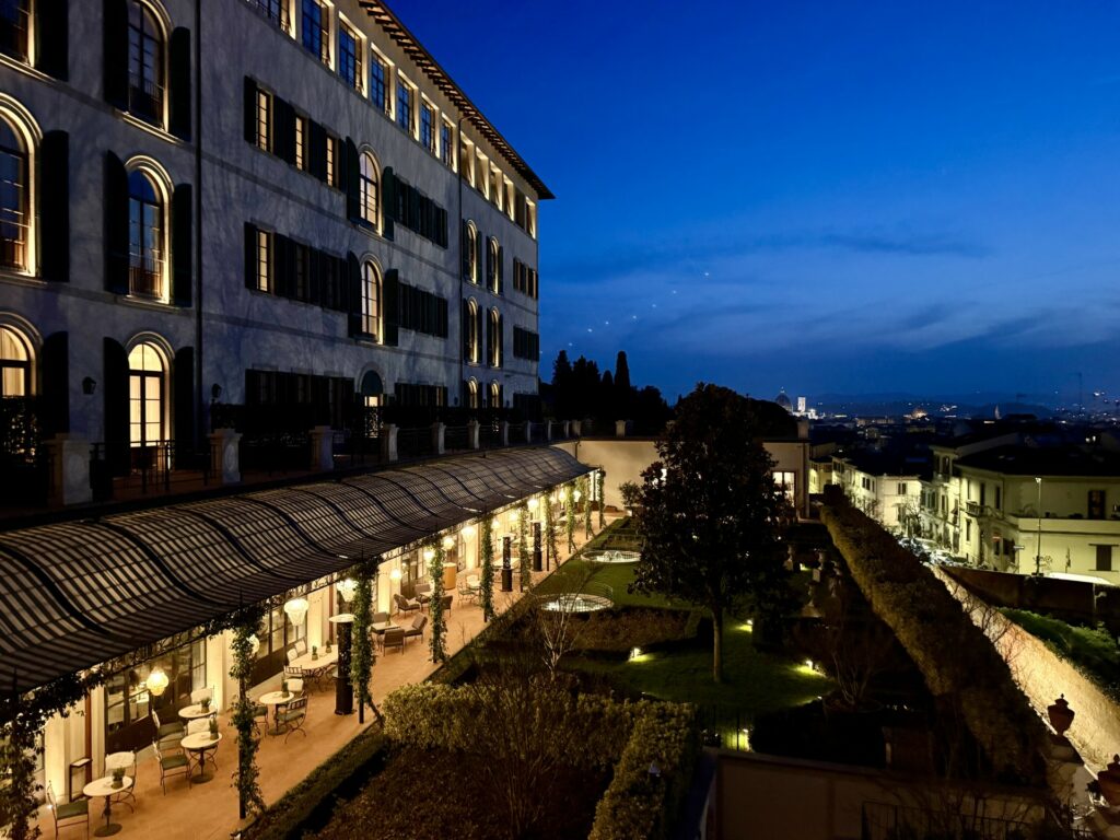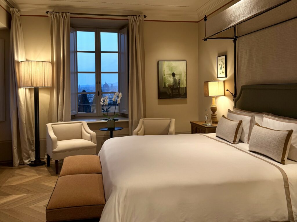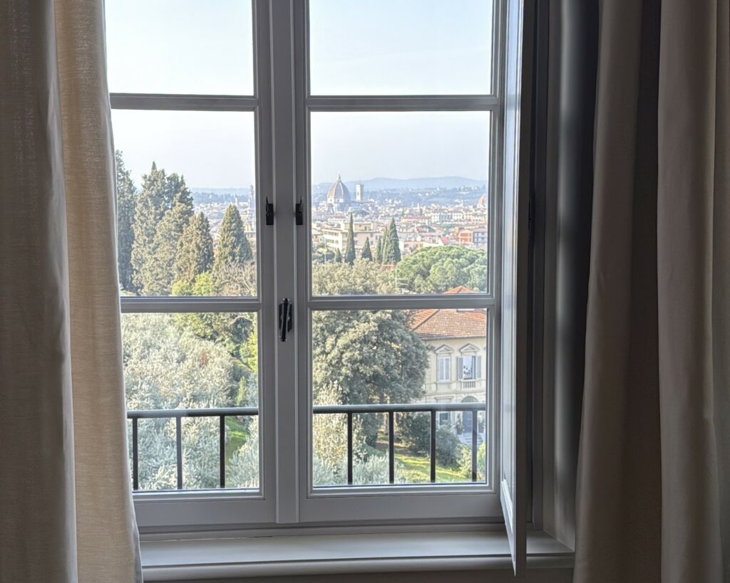 Le camere sono ampie e spaziose, dotate di ogni confort, molte godono anche di una impareggiabile e privilegiata vista sulla città di Firenze. Alcuni servizi dell’hotel sono anche aperti anche agli esterni, in particolare la colazione che viene servita nel ristorante della struttura La Gamella è varia e curata nei minimi dettagli, elevata la qualità degli sfogliati, ampia selezioni di piatti dolci e salati, perfettamente eseguiti. Il Budino di chia al cocco con granola e limone candito si ricorda per originalità ma anche per l’equilibrio e la piacevolezza dei sapori così come il goloso Pain perdu con salsa ai lamponi e mandorle caramellate.