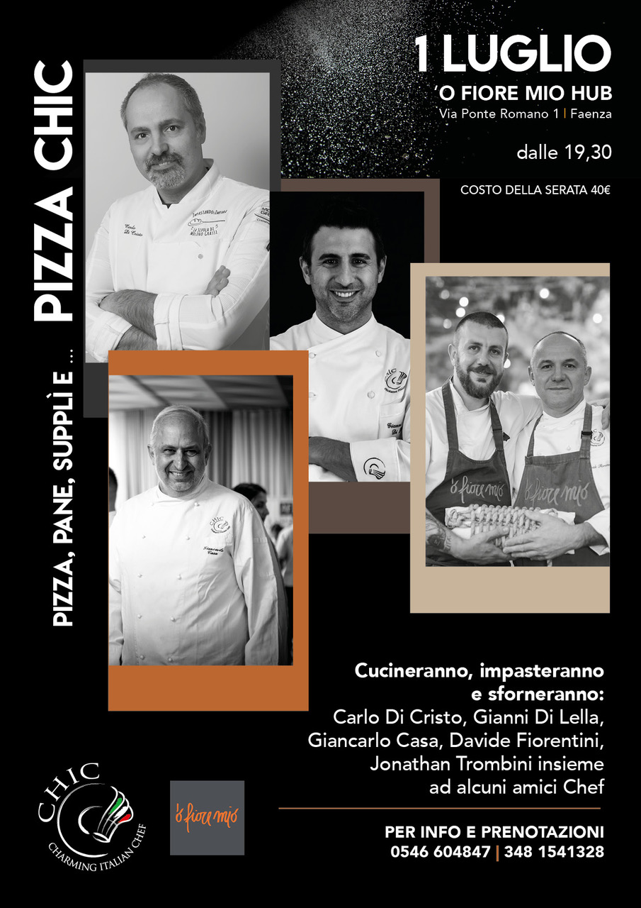 La tappa del 1 luglio sarà la sola dedicata alla pizza e vedrà cooperare tra loro chef, pizzaioli e panificatori – sarà infatti presente una delegazione di panificatori proveniente da varie regioni d’Italia – che incanteranno giornalisti e blogger di settore invitati e che si concluderà alla sera con Pizza CHIC: supplì, pizza, pane e altri lievitati realizzati e movimentati da Giancarlo Casa, Carlo Di Cristo, Gianni Di Lella, Davide Fiorentini e Jonathan Trombini.